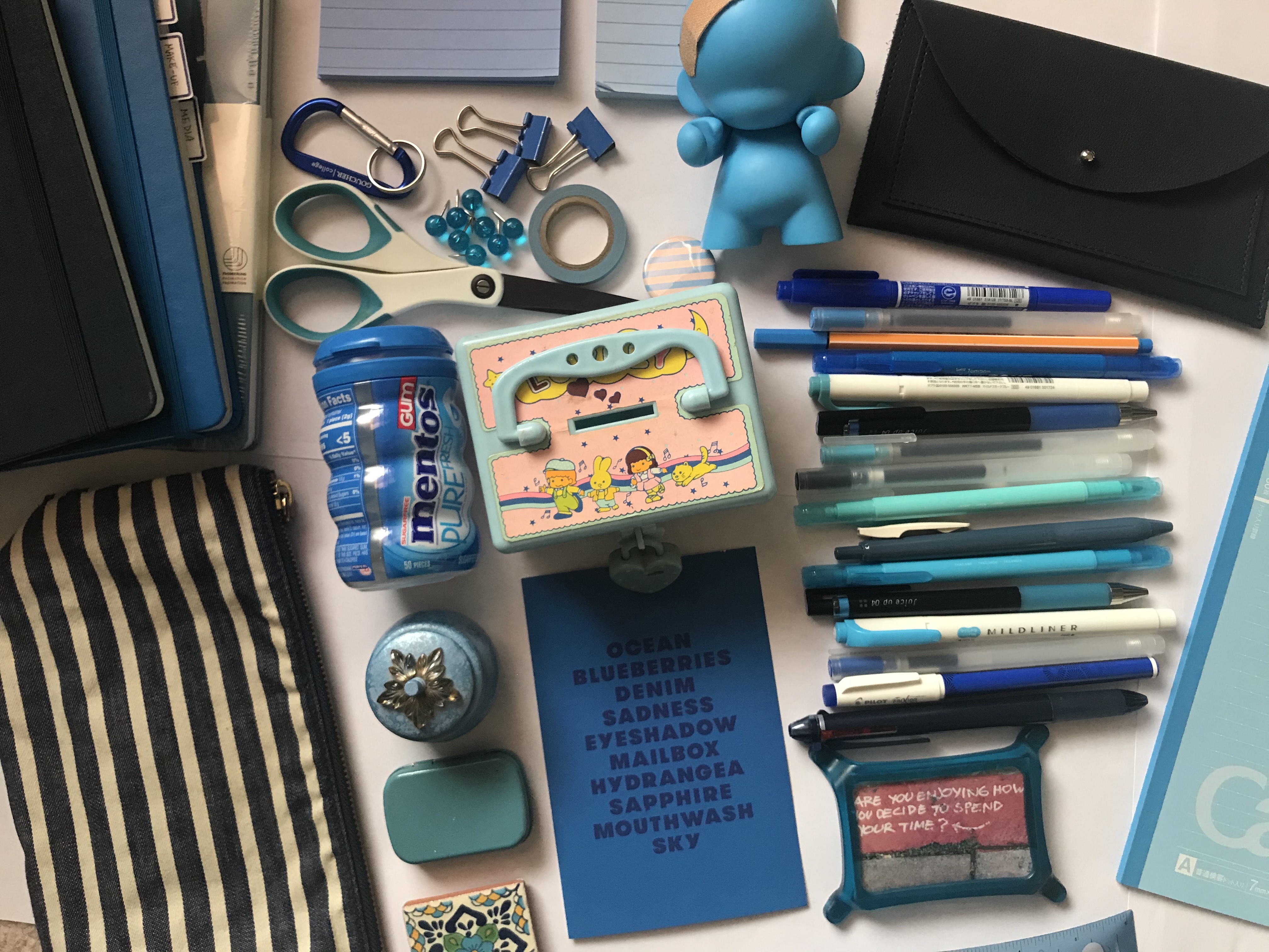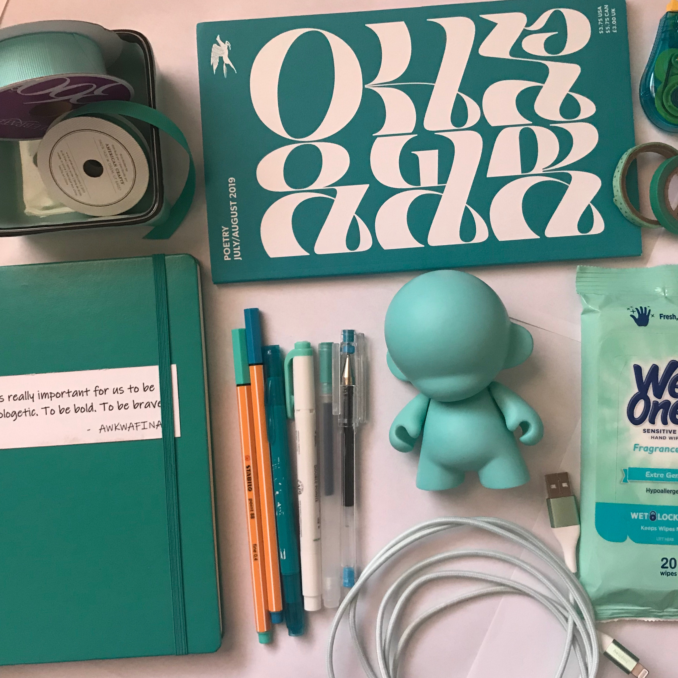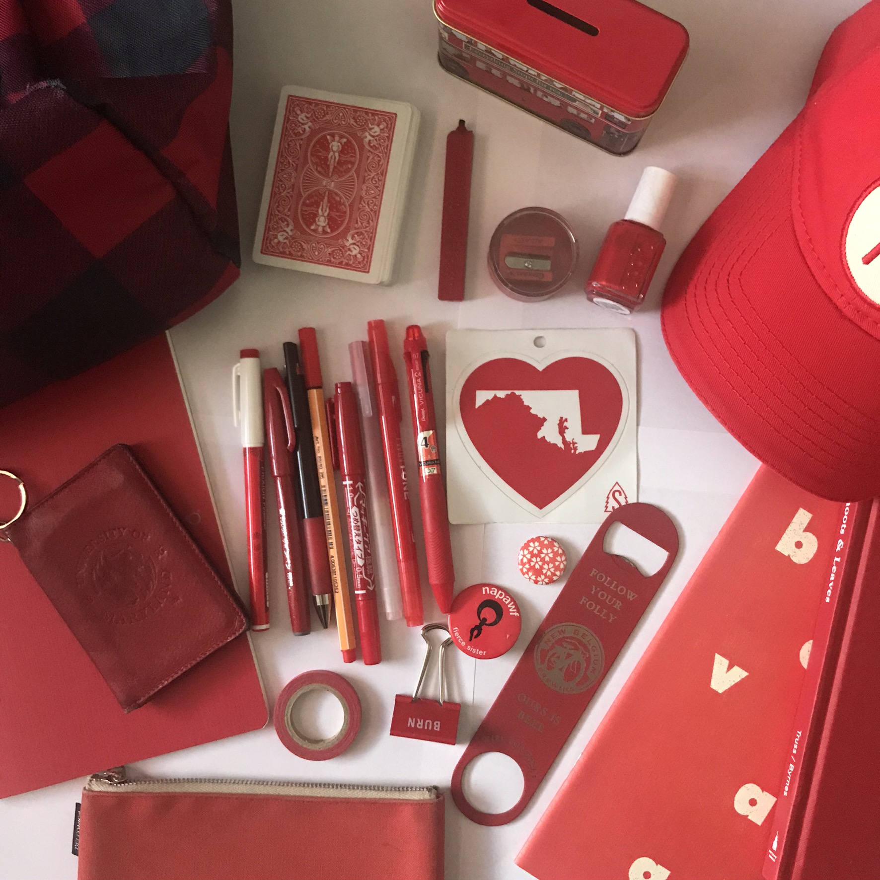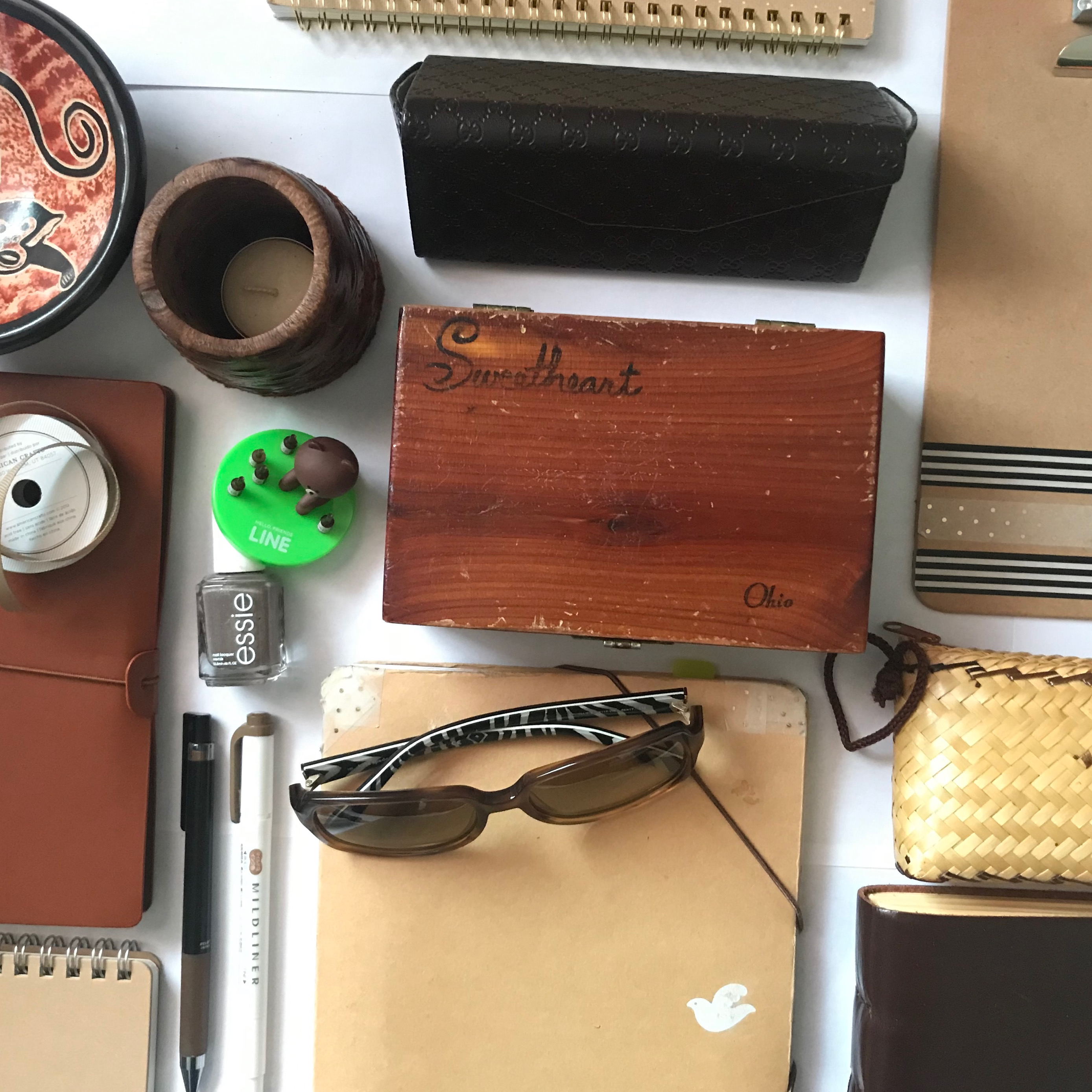In early April, a few weeks after lock down started in Maryland, I came across the color scavenger hunt, an activity idea for kids via The Color Factory and party expert, Darcy Miller. The idea is simple: Gather items of a specific color in your room or house, lay it all out, and then take a picture. What was an idea for kids became for me, a fun, necessary break from my computer and being online, and surprisingly, a chance to flex my haiku writing skills. Not to mention I got a chance to look through all my stuff. An abbreviated version of tidying, so to speak.